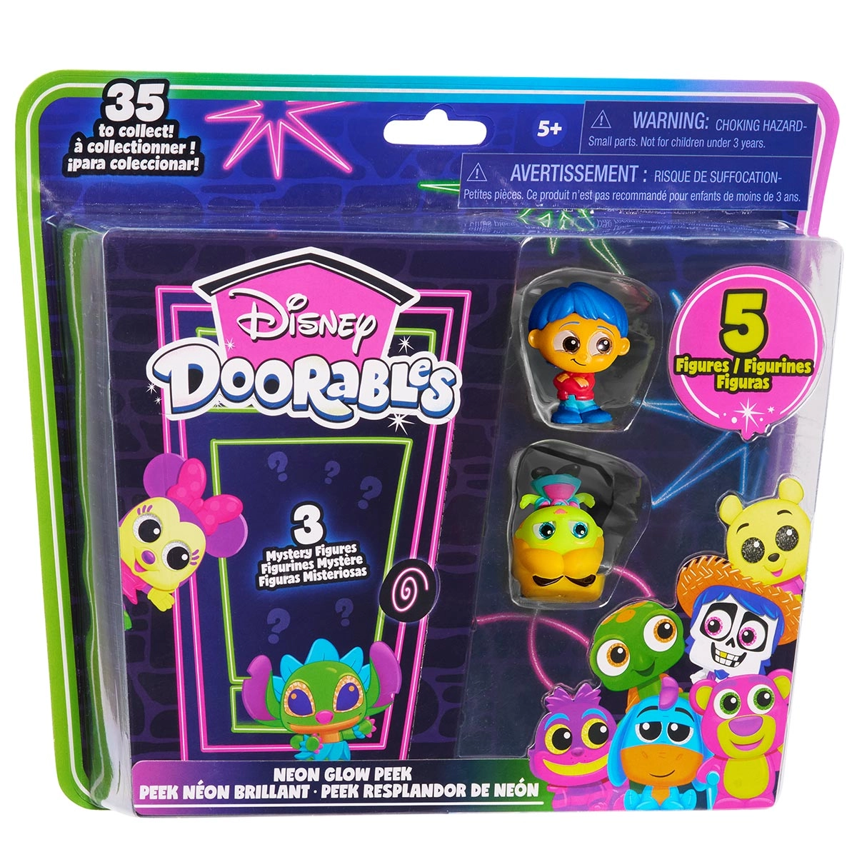 Os Disney Doorables trazem a magia da Disney para a sua casa. Cada pacote inclui 5 figuras de brinquedo, sendo 2 bonecos visíveis e 3 misteriosos escondidos, prontos para serem revelados. Com aproximadamente 3,8 cm de altura, cada boneco possui detalhes exclusivos, como olhos brilhantes com glitter e acabamentos ultravioleta especiais. A série Neon Glow Peek traz 35 figuras inspiradas em personagens icônicos, como Mickey Mouse, Alice no País das Maravilhas, Lilo e Stitch, Toy Story e muito mais. Esses pacotes são ótimos presentes para fãs da Disney, trazendo magia e diversão para qualquer ocasião. Produto licenciado oficialmente pela Disney. ©Disney. REGISTRO 011297/2023 BRI-1