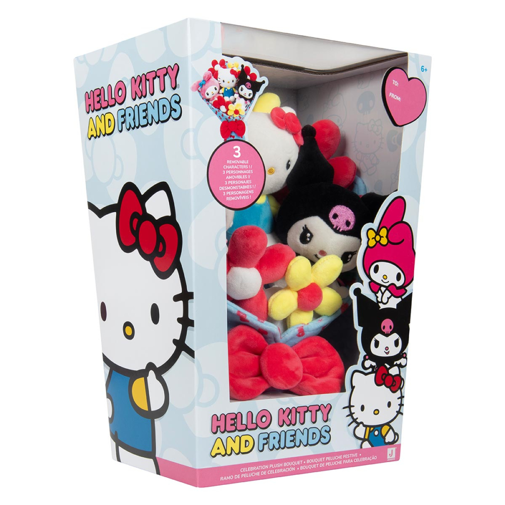 Descubra o fantástico mundo da gatinha mais fofa do mundo com a nova linha de pelúcia da Hello Kitty e seus amigos agora em formato de buque, com figuras únicas sendo ricas em detalhes e totalmente personalizadas para deixar a sua diversão ainda melhor! Agora a Hello Kitty e seus melhores amigos vão te acompanhar em qualquer lugar, os novos chaveiros de pelúcia podem ir com você em qualquer lugar, cada pelúcia é única e totalmente personalizada para fazer parte da sua decoração, escolha a sua pelúcia favorita! Se divirta com as novas pelúcias da Hello Kitty e seus amigos!