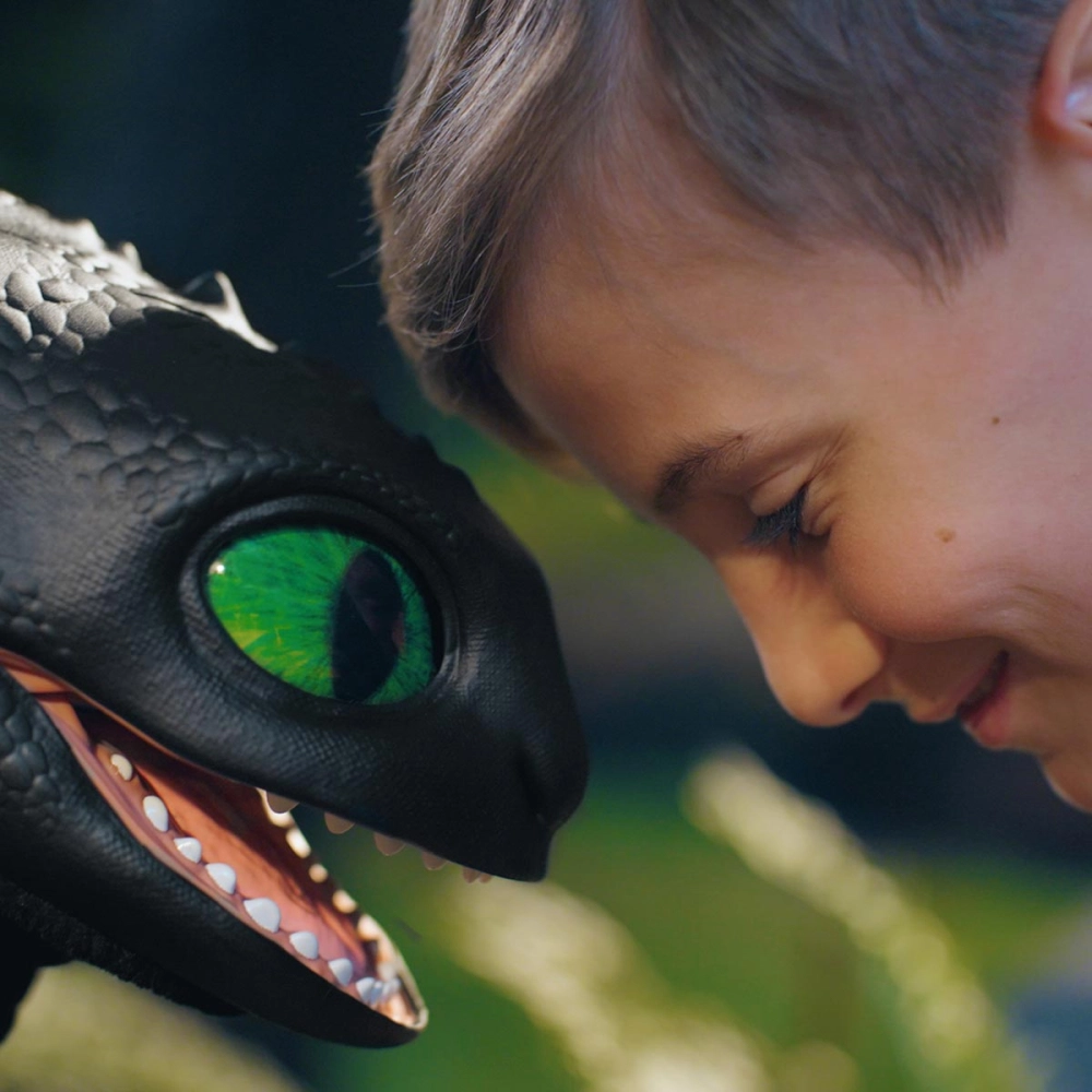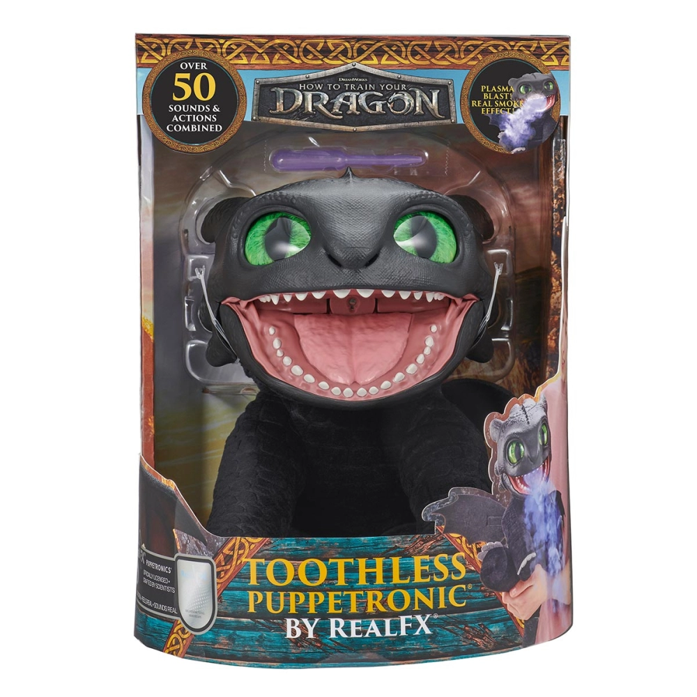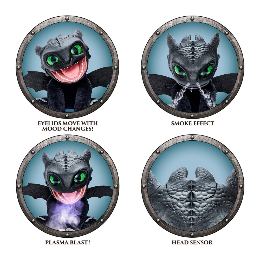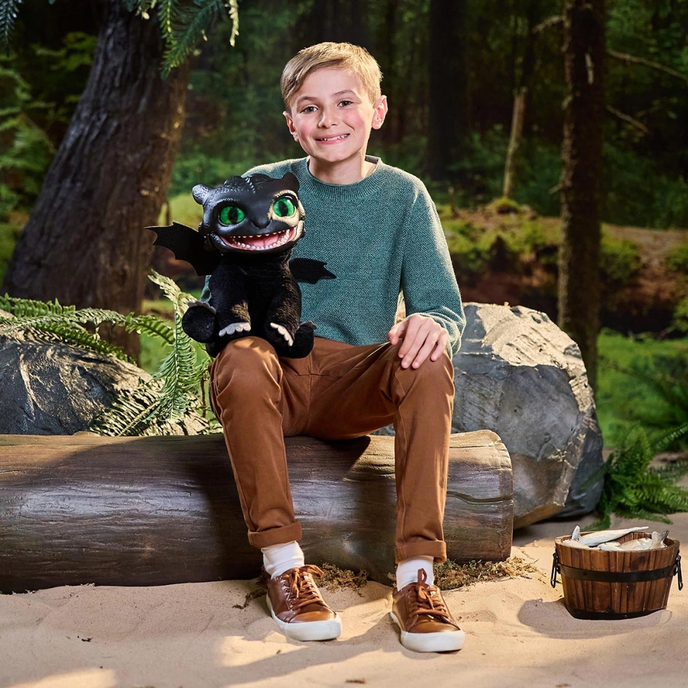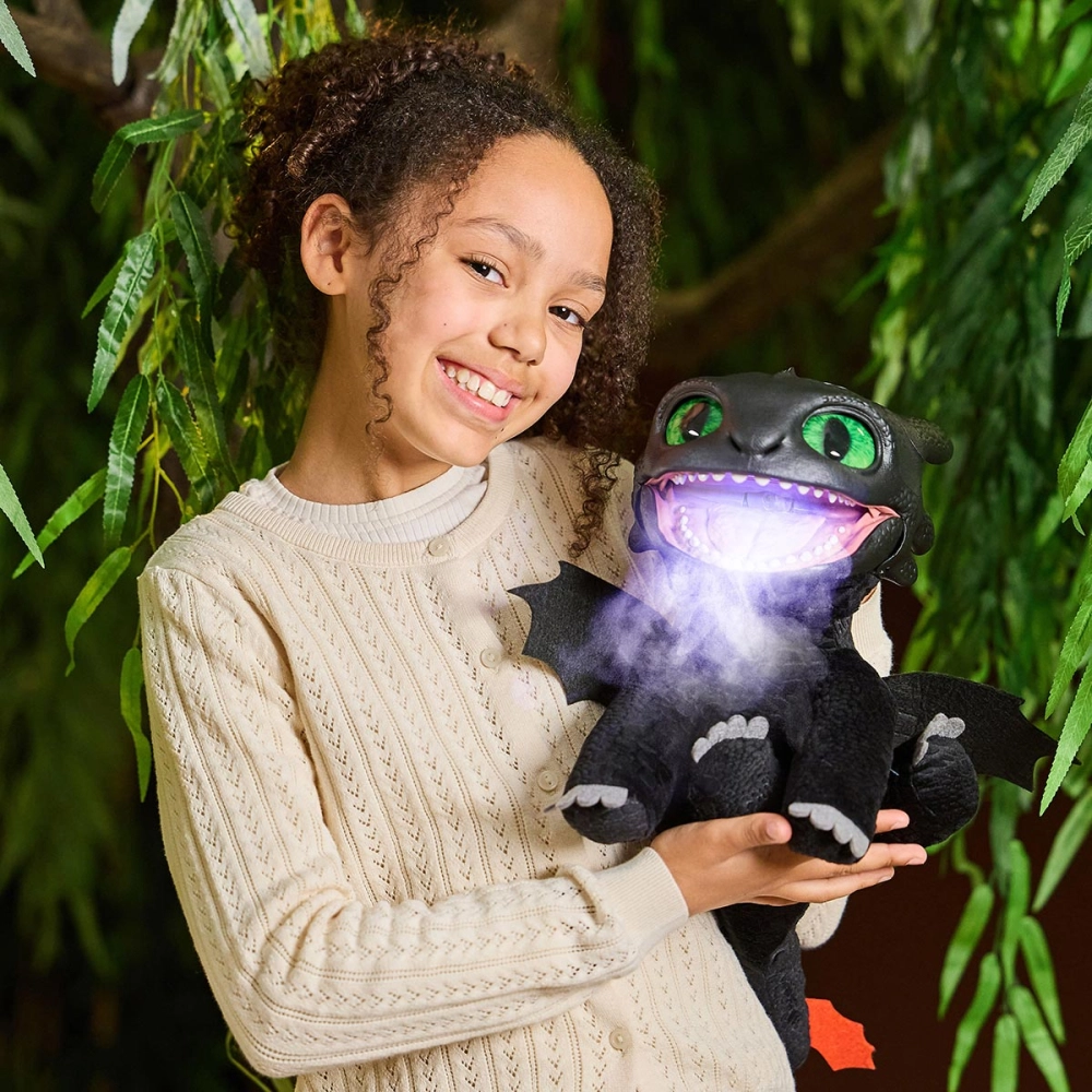 A pelúcia interativa da Universal DreamWorks, desenvolvida pela WOW! Stuff, une marionetagem e robótica para dar vida ao Banguela. Com mais de 50 frases e sons autênticos do filme, sua boca e cabeça se movem e reagem ao toque. Libera rajada de plasma em formato de luz e fumaça de dragão pelo nariz e boca. É possível alterar os humores de Banguela (carinhoso, protetor ou bravo) com três botões. Com 26 cm, é perfeita para abraços, brincadeiras e admiradores de Como Treinar o Seu Dragão de todas as idades. REGISTRO 018065/2024 BRI-1