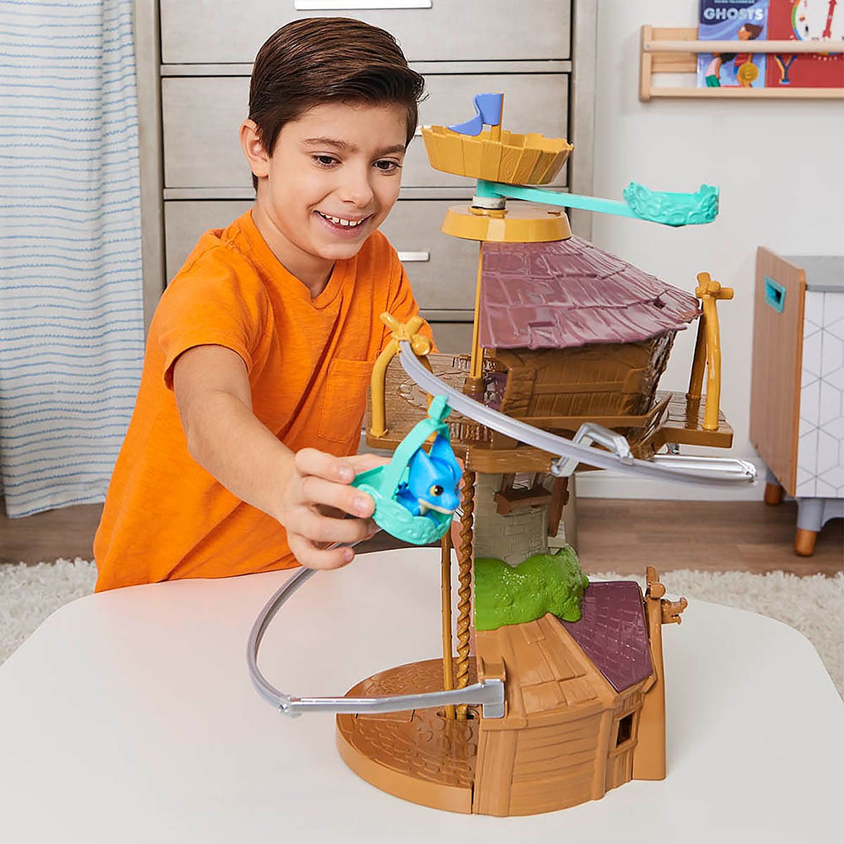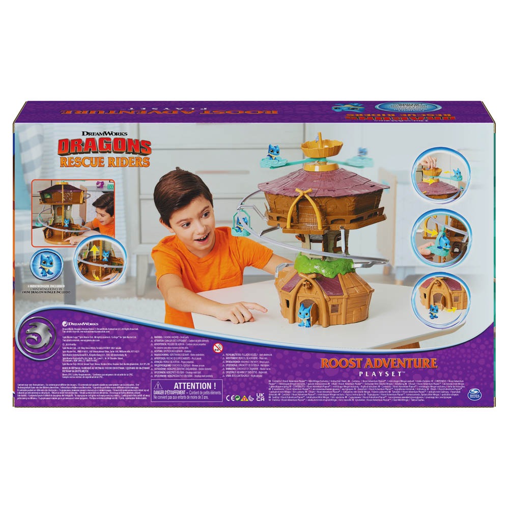 O Playset Roost Adventure foi feito para figuras de 3 e possui diversos recursos. Deslize o seu dragão favorito pela tirolesa, abra a porta para eles e curta diversas aventuras. Inclui 1 mini figura do Dragão Winger.