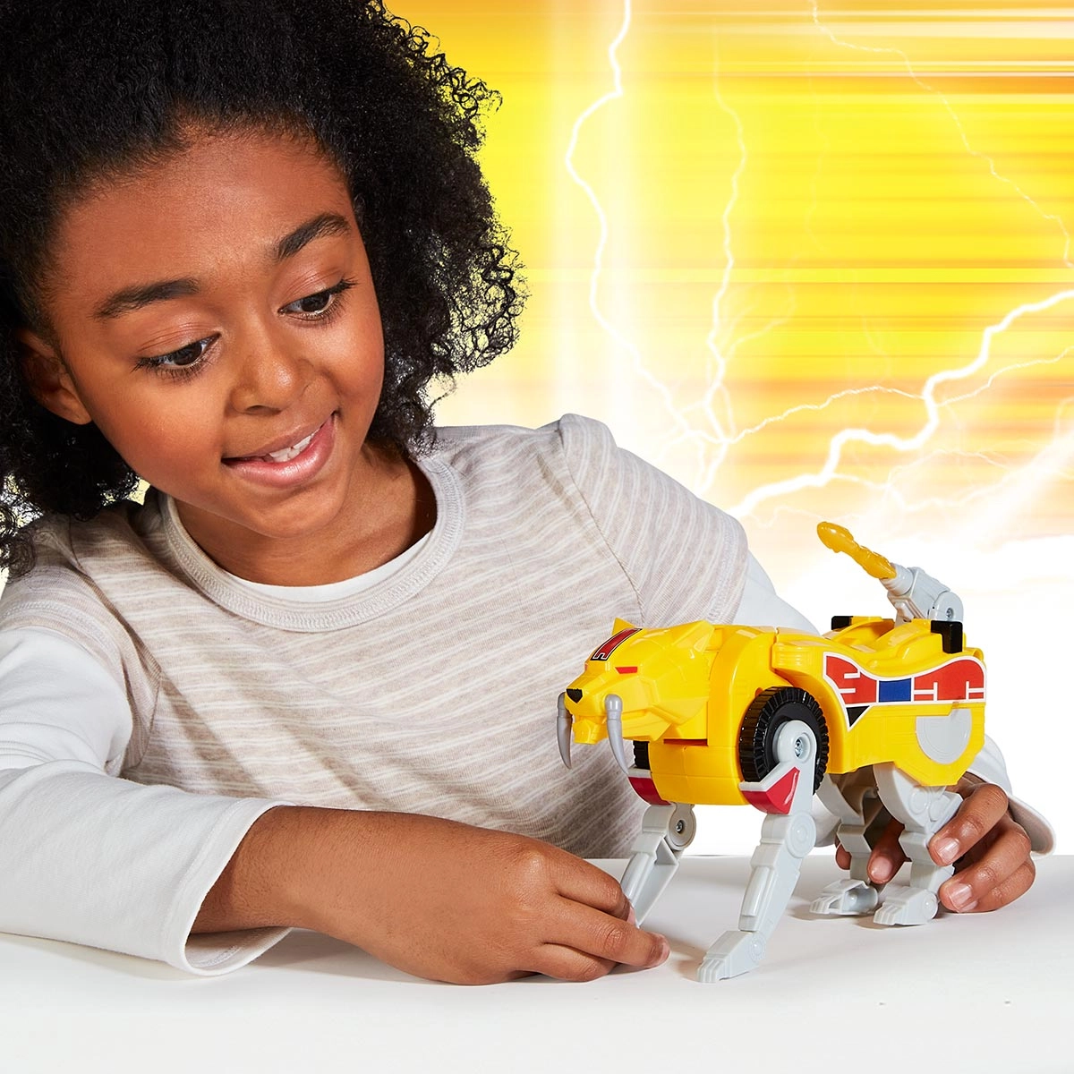 Os Mighty Morphin Power Rangers despertam o poder de seus Dinozords individuais, que podem se combinar para formar o Megazord. Cada sortimento, Tyrannosaurus, Mastodon, Triceratops, Sabertooth Tiger e Pterodactyl, oferece duas formas de montagem: Modo Tanque e Modo Batalha. Cada Dinozord permite criar histórias cheias de coragem, amizade e criatividade, com infinitas possibilidades de interação entre os diferentes sortimentos vendidos separadamente.