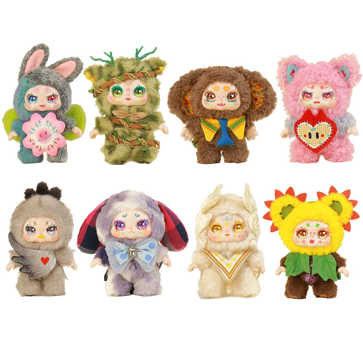 Cada personagem apresenta design excêntrico, expressões marcantes e roupas cheias de detalhes que evocam um universo mágico e enigmático. A textura macia contrasta com a intensidade das cores e acabamentos criativos, tornando cada peça um destaque de estilo.