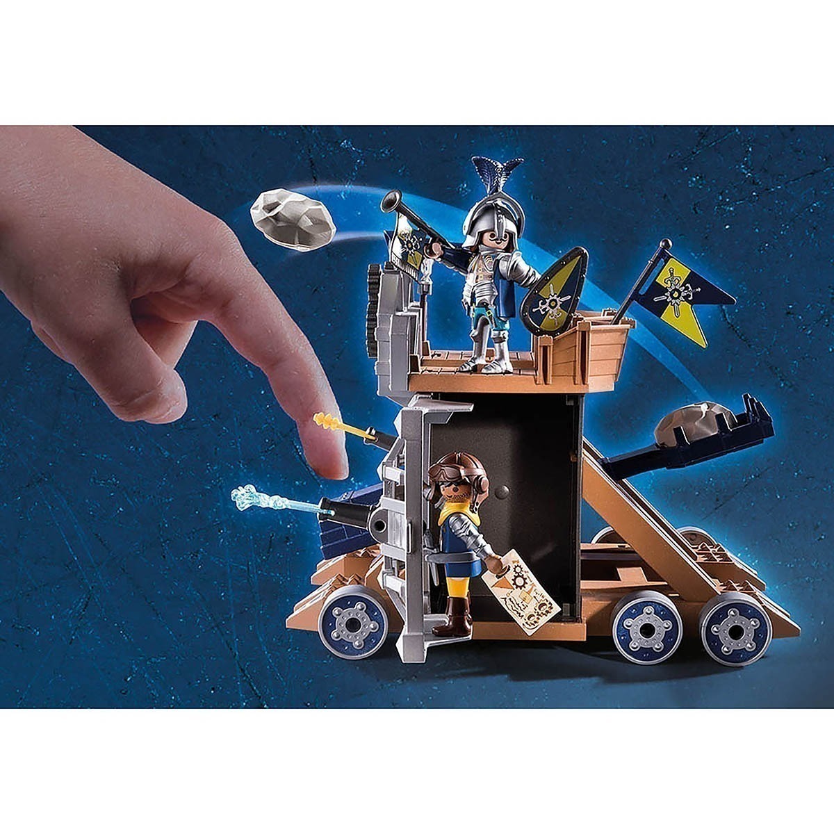 Proteja seu reino de visitantes indesejados com a Fortaleza movel de Novelmore. Dois cavaleiros na nova invenção de Dario Da Vinci. Uma combinação de catapulta e lançador de flechas.Conteúdo: 72 peças sendo: Figuras: 2 Knights of Novelmore Acessórios: 1 besta, 1 espada, 1 escudo, 1 fanfarra, 1 capacete, 1 boné de piloto, 1 desenho técnico, 1 bandeira, 4 balas, 2 pedras, 1 telescópio. Dimensão:
