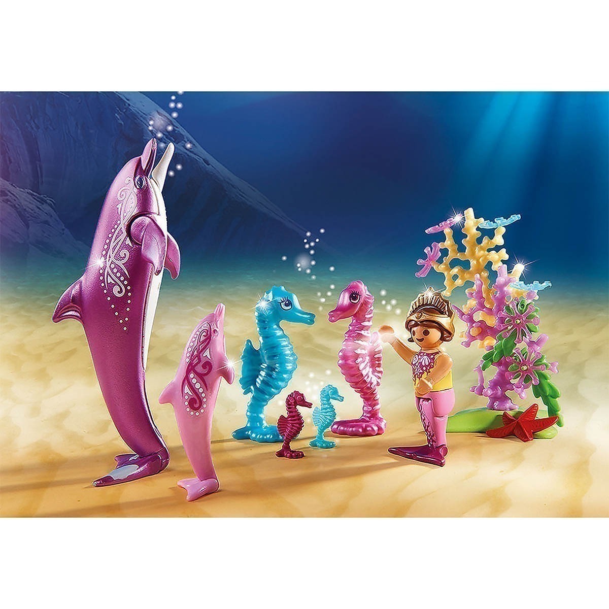 Junte-se às sereias no seu paraíso no fundo do mar. Aqui, tudo está cheio de vida. Enquanto os bebés vão no carrinho, uma pequena sereia nada feliz com os golfinhos. Após a caminhada, os mais pequenos brincam com o arco de jogo para bebés na plataforma de coral. Dois cavalos-marinhos nadam e divertem-se com o jogo. Características: Marca: Sunny Brinquedos Referência: 3332 Idade recomendada: A partir de 4 anos Pilhas Inclusas? Tipo de Pilha/Bateria Não necessita de pilhas Possui Luzes: Não Possui Sons: Não Dimensões aproximadas da embalagem: 28 x 45 x 11cm (A x L x C) Garantia: 3 meses a contar da emissão da Nota Fiscal Embalagem: Conteúdo da embalagem: Três sereias PLAYMOBIL, uma figura infantil, dois bebés, duas carruagens marítimas, duas plataformas, um escorrega infantil, dois cavalos marinhos, dois golfinhos, uma moreia e muitos outros extras encantadores. Certificado Inmetro: REGISTRO 007649/2020 BRI-1 Produtos de decoração não inclusos. Imagens meramente ilustrativas. As cores dos objetos podem sofrer alterações devido a luminosidade, configurações do monitor e até mesmo a percepção do usuário.
