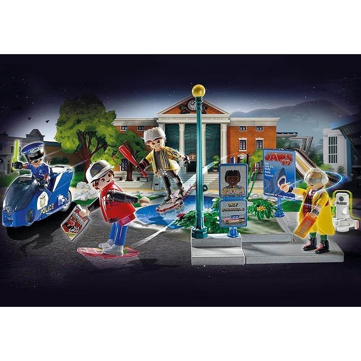 Com Os Personagens Marty Mcfly, Dr. Emmett Brown E Biff Tannen Do Ano 2015. Inclui Um Cartão Postal De Colecionador Com Efeito Lenticular Para Fãs Reais. Depois De Sua Primeira Viagem Ao Passado, Marty Mcfly Agora Segue Para 2015. No Futuro, Biff, O Neto Do Arquirrival De Marty, Biff Tannen, Está Em Seus Calcanhares, Desta Vez Em Pranchas Voadoras Em Vez De Skates. Será Que Marty Conseguirá Ultrapassar Biff, Salvar Sua Família E Voltar A 1985? Com O Mais Recente Set De De Volta Para O Futuro Da Playmobil, Os Fãs Da Trilogia Dos Filmes Clássicos Podem Reconstituir A Lendária Cena De Perseguição De Pranchas Flutuantes, Anexando As Figuras Por Meio Dos Apoios Para Os Pés. Além De Marty E Biff Em Seus Hoverboards, O Playset Também Inclui Doc Brown Em Uma Roupa Futurista, Policial Com Motocicleta, Pôsteres, Cenário, Adições Legais Para O Delorean (Vendido Separadamente) E Um Cartão Postal De Colecionador Para Fãs.
