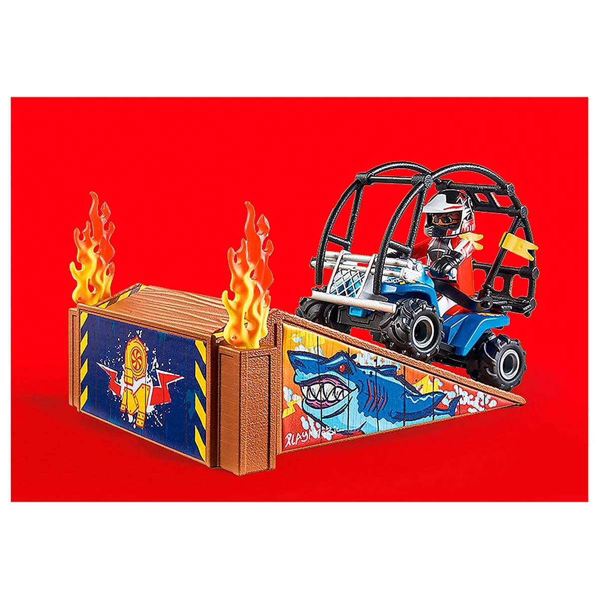 Starter Packs a introdução perfeita aos mundos temáticos da PLAYMOBIL! Desfrute de emoções e entretenimento emocionantes no Stunt Show! Veja como o ousado piloto de acrobacias dirige o quadriciclo para fora da rampa de fogo, rola no ar e pousa com segurança de volta ao chão.Características:Marca: Sunny BrinquedosReferência: 2267Idade recomendada: A partir de 4 anosPilhas Inclusas? Tipo de Pilha/Bateria Não necessita de pilhasPossui Luzes: NãoPossui Sons: NãoDimensões aproximadas da embalagem: 18 x 24,5 x 9cm (A x L x C)Garantia: 3 meses a contar da emissão da Nota FiscalEmbalagem:Conteúdo da embalagem: 1 homem; Acessórios: 1 rampa, 1 quad, 2 luvas, 1 capacete, 2 barris de chamaCertificado Inmetro: REGISTRO 007648/2020 BRI-1Produtos de decoração não inclusos. Imagens meramente ilustrativas.As cores dos objetos podem sofrer alterações devido a luminosidade, configurações do monitor e até mesmo a percepção do usuário.
