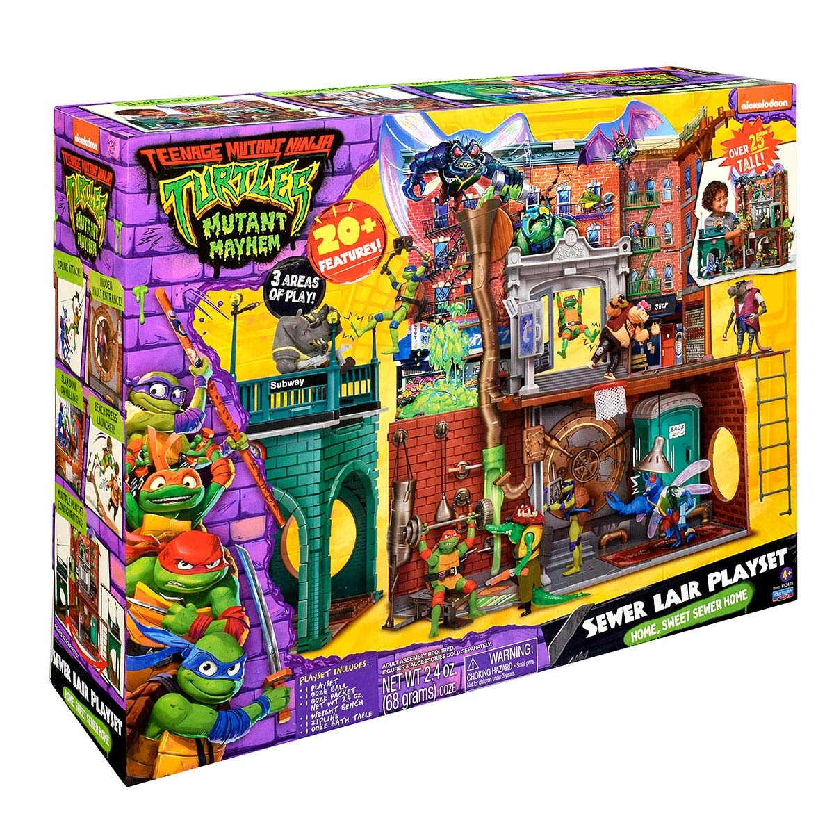 Conheça o Playset Covil no Esgoto, inspirado no filme As Tartarugas Ninja: O Caos Mutante. Ele tem mais de 20 recursos diferentes para manter as Tartarugas prontas para a ação! Se divirta explorando os 3 níveis do playset (horizonte, rua e esgotos) e reviva suas cenas favoritas. Inclui um dojo onde as Tartarugas podem treinar para lutar, uma tirolesa para viajar do horizonte até o nível da rua em segundos, um elevador portátil que leva desde os esgotos até o nível da rua, uma porta de cofre secreta, escorregadores e pisos falsos. Além disso, o conjunto acompanha 68g de gosma verde e viscosa, que você pode utilizar para derrubar sobre os vilões. Características: Marca: Sunny Brinquedos Referência: 3675 Idade recomendada: A partir de 3 anos Pilhas Inclusas? Tipo de Pilha/Bateria Não necessita de pilhas Possui Luzes: Não Possui Sons: Não Dimensões aproximadas da embalagem: 38,6 x 49,6 x 14,1cm (A x L x C) Garantia: 3 meses a contar da emissão da Nota Fiscal Embalagem: Conteúdo da embalagem: 3 áreas para brincar incluindo mais de 20 funcionalidades Certificado Inmetro: REGISTRO 001322/2023 Produtos de decoração não inclusos. Imagens meramente ilustrativas. As cores dos objetos podem sofrer alterações devido a luminosidade, configurações do monitor e até mesmo a percepção do usuário.