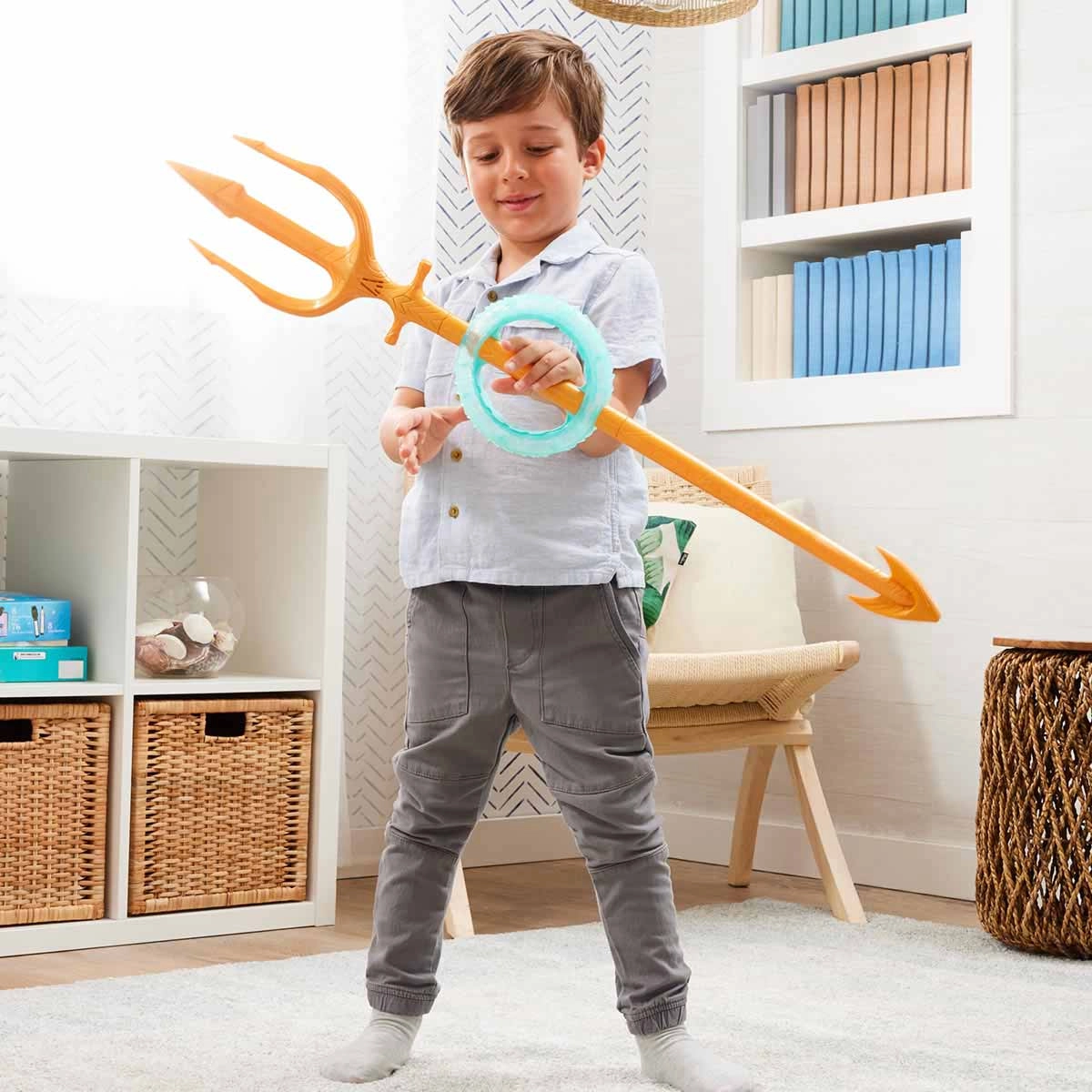 Torne-se o Aquaman com o Tridente Giratório de Luxo inspirado no filme Aquaman 2: O Reino Perdido! O Tridente do Aquaman vem com sons para deixar a brincadeira ainda mais divertida e gira como no filme. O Tridente tem 89cm de comprimento. Características: Marca: Sunny Brinquedos Referência: 3456 Idade recomendada: A partir de 3 anos Pilhas Inclusas? Tipo de Pilha/Bateria Sim. 3 Baterias tipo botão AG13 (LR44) de 1,5V Possui Luzes: Não Possui Sons: Sim Dimensões aproximadas da embalagem: 30,5 x 50,5 x 7,5cm (A x L x C) Garantia: 3 meses a contar da emissão da Nota Fiscal Embalagem: Conteúdo da embalagem: 1 Tridente Giratório de Luxo Certificado Inmetro: 55283/22-001 Produtos de decoração não inclusos. Imagens meramente ilustrativas. As cores dos objetos podem sofrer alterações devido a luminosidade, configurações do monitor e até mesmo a percepção do usuário.